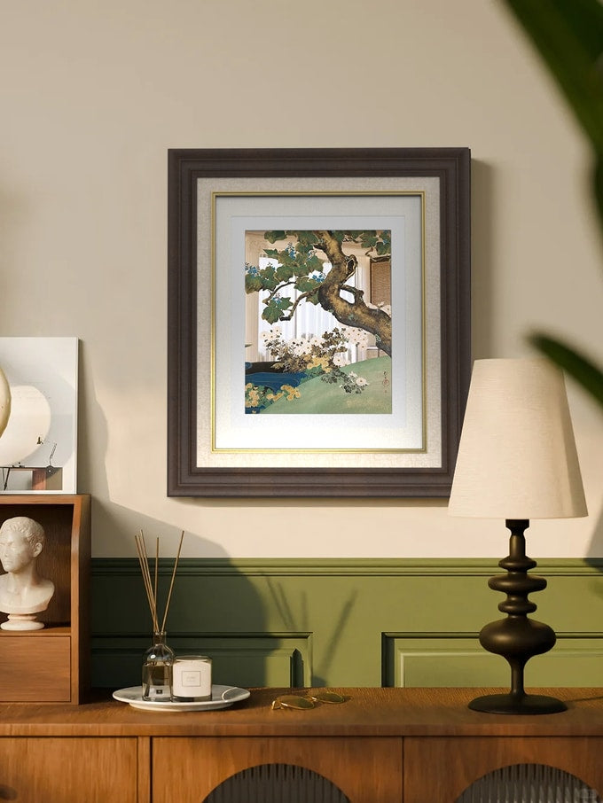 - Handmade solid wood frame: North American black walnut (natural color/black)/European oak (gilded craft) optional